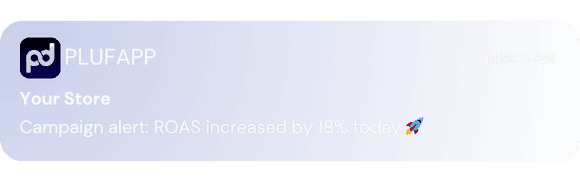 Track your performance without digging into dashboards. PlufApp analyzes your Meta Ads & Shopify data in real time, detects what’s falling behind, and recommends the next best action before your team even asks.