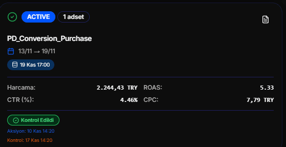 Kampanyalar üzerinde aldığımız aksiyonları takip et, verileri ve gelişmiş yapay zeka önerilerini incele.